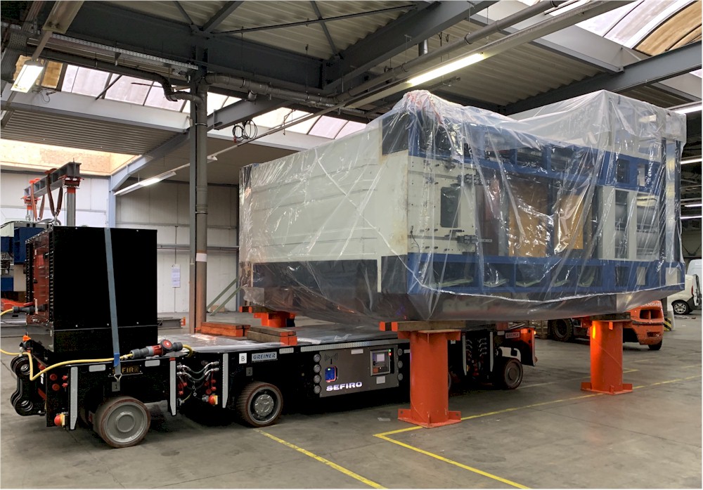 Eine etwas andere und neue SEFIRO Ausführung erhielt unlängst die Firma Jozef Hermans -Industrial Movers- aus Venlo. Jos Hermans wünschte explizit einen SEFIRO mit einem 400 Volt Antriebsaggregat, so dass die Stromversorgung wahlweise vom lokalen Stromnetz oder von einem Stromgenerator zur Verfügung gestellt werden kann. Je nach erforderlicher Leistung kann das Fahrzeug beliebig von 32 bis 128 Ampere Stromstärke versorgt werden. Für Eventualitäten wird das Antriebskonzept durch ein zusätzliches Diesel- Powerpack ergänzt.